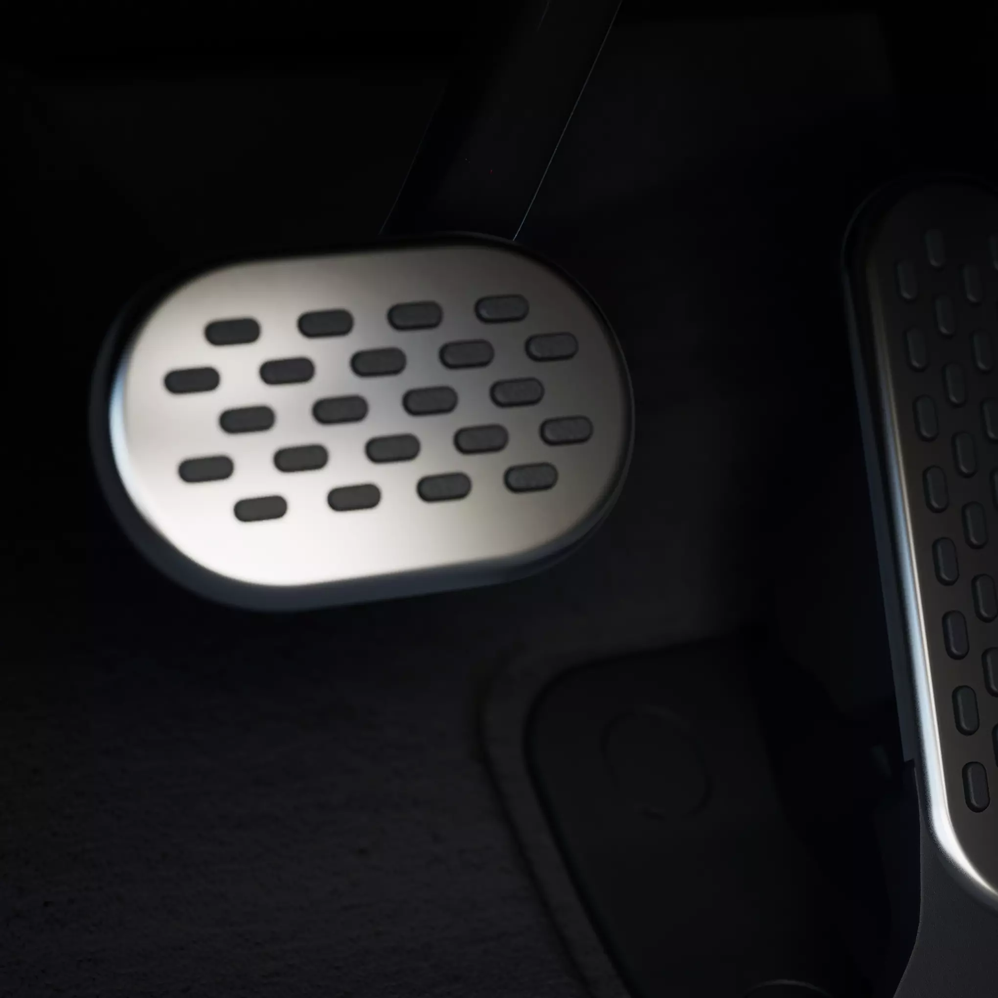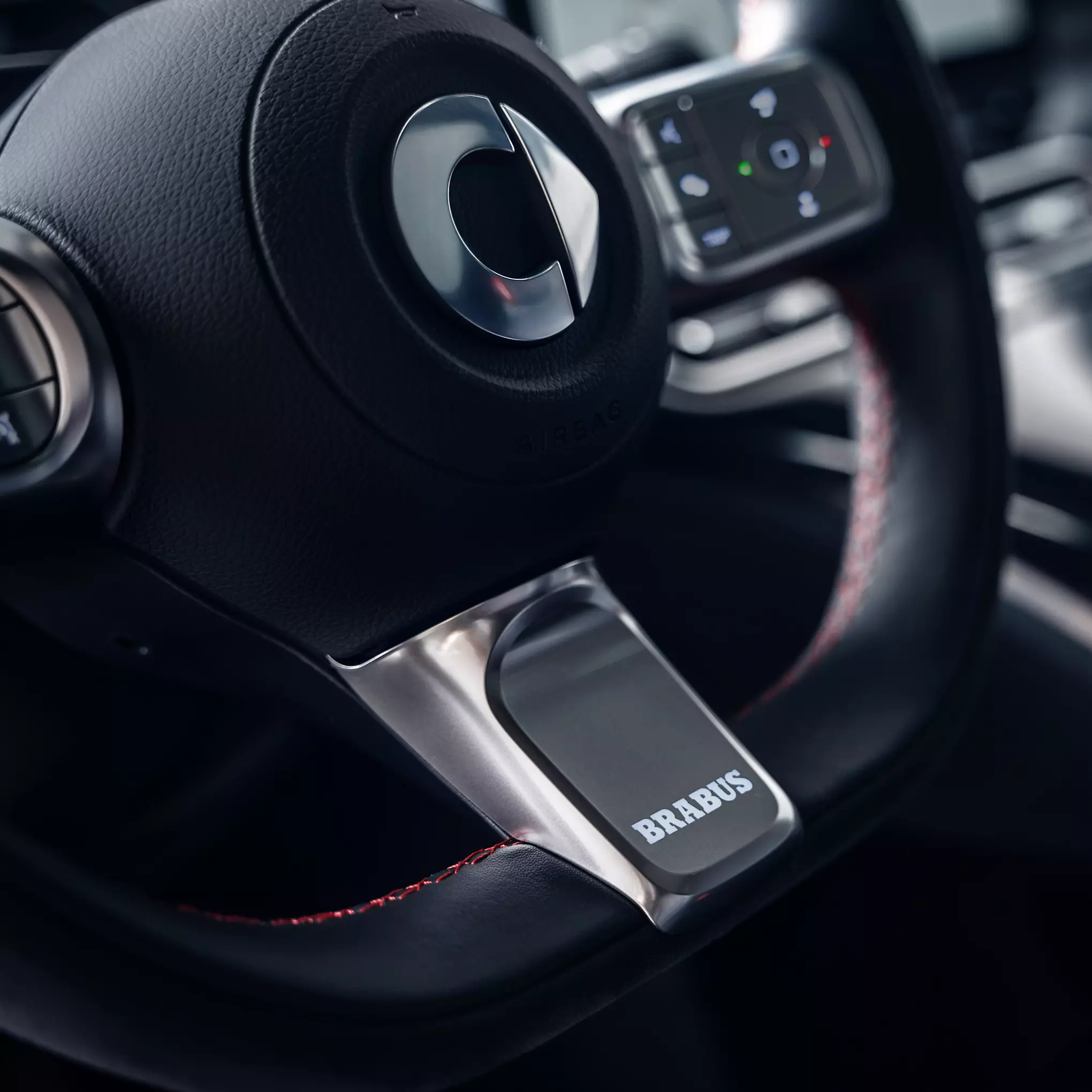 Í BRABUS er ekkert til sparað. Fótstigin eru ekkert óvenjuleg, en þú getur treyst því að það verður alltaf stíll yfir þér þegar þú stígur á inngjöfina eða hemlana.