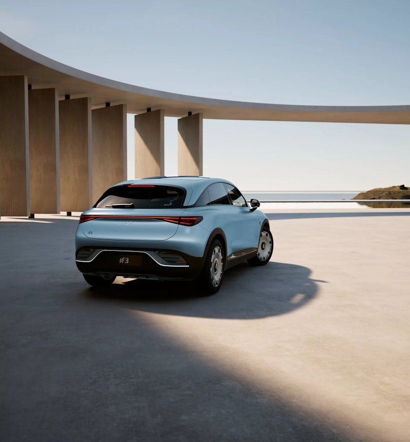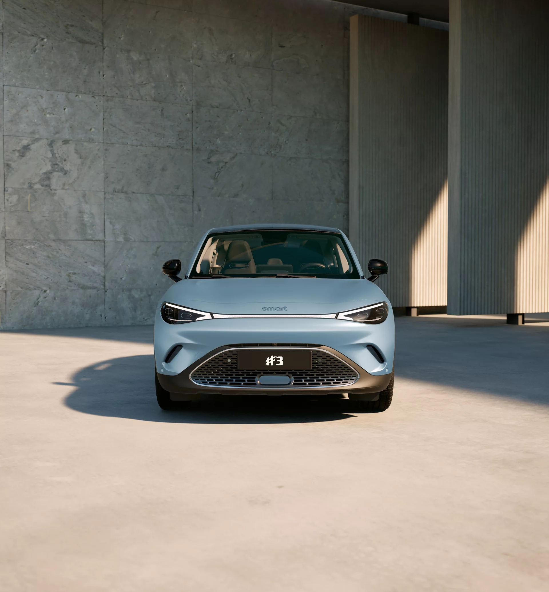 Vörulínan okkar stækkar og við hana bætist sportlegur rafbíll. Með kraftmiklum og skörpum línum sínum vekur smart #3 athygli hvert sem hann fer. Ávalar línurnar draga enn frekar úr loftmótstöðu og togi ásamt því að auka drægni. Þar sem hleðslutími er innan við 30 mínútur þarftu ekki að bíða eftir því að komast af stað, hvort sem leiðin liggur heim eða í næsta ævintýri.